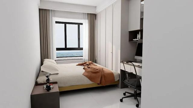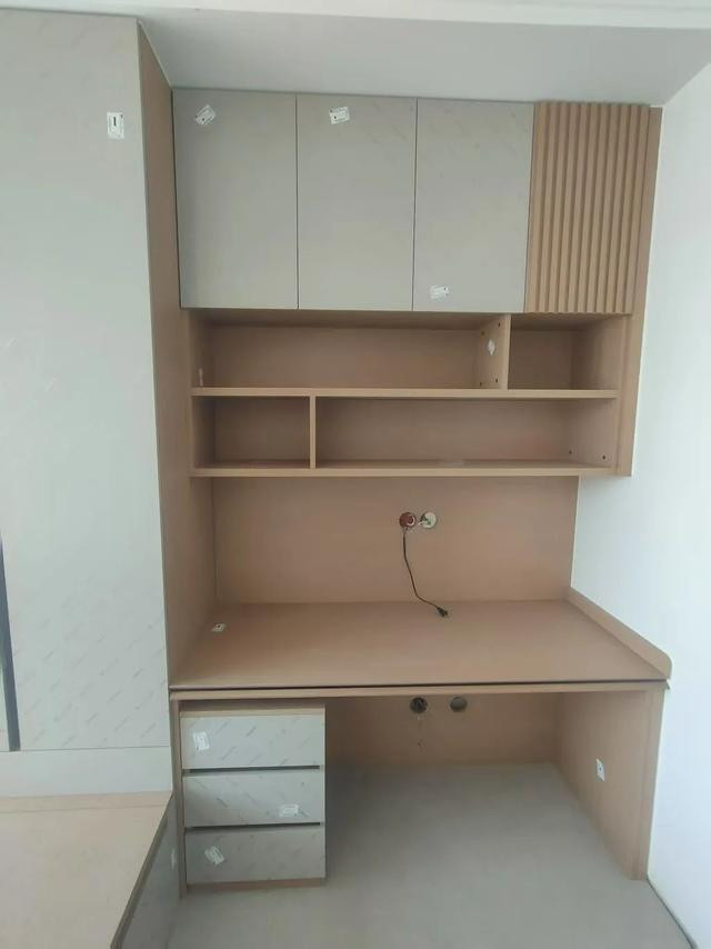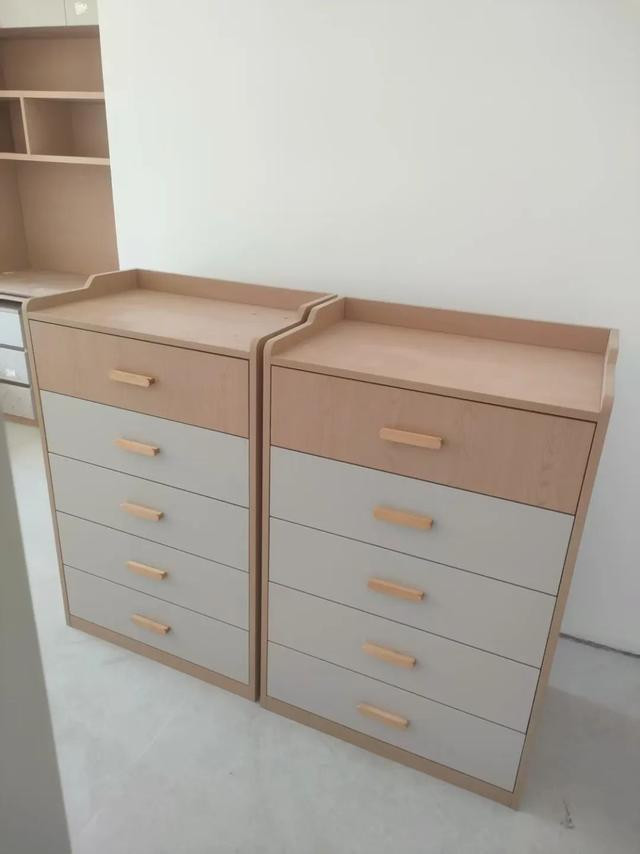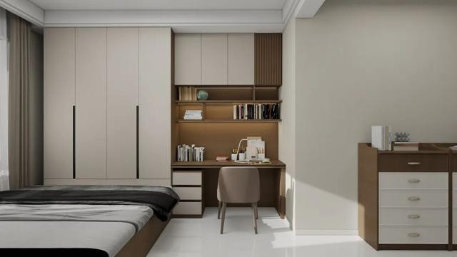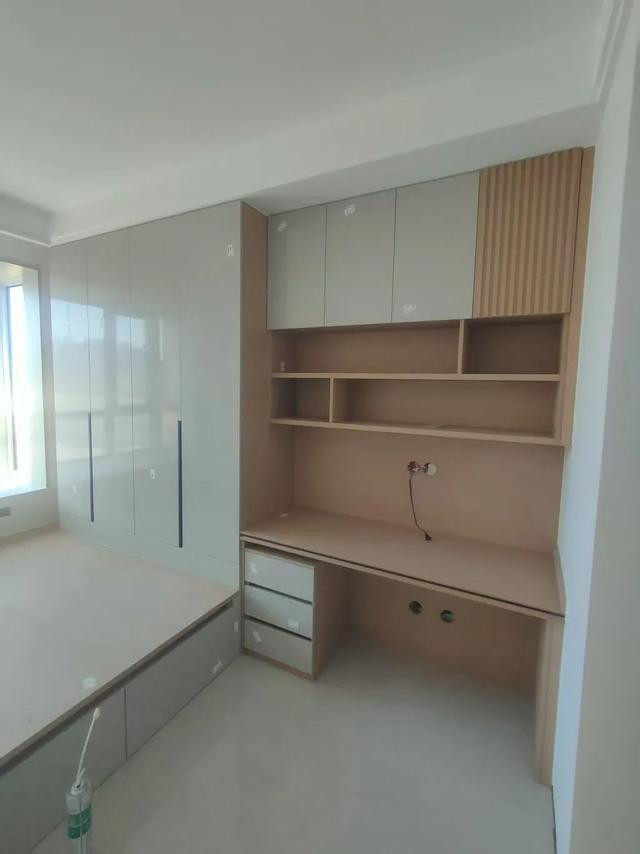 进门卧做了榻榻米+书桌的设计,还利用了进卧室门的空间,做了两个五斗柜,用于收纳平时的小件衣物。