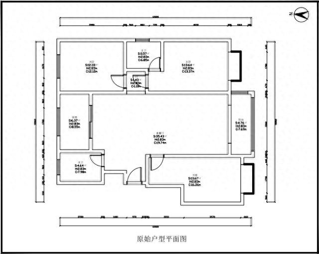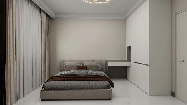 本案例是一户三室两厅两位一阳台的户型,该户型南北通透,客餐厅阳台连在一起,活动空间很大。卧室也很方正,空间基本满足各项功能。唯一的缺点是客卧门开在了沙发墙,稍稍破坏了客厅的整体性。