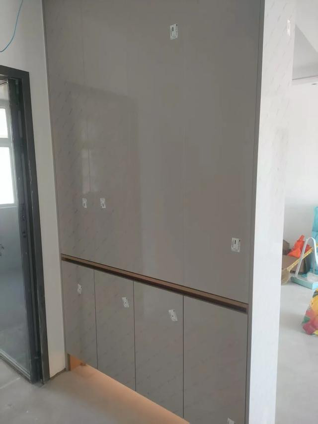 入户门小鞋柜,主要作用是遮挡分水器,深度只有十几厘米,没法放鞋子。台面可以收纳包包和钥匙。